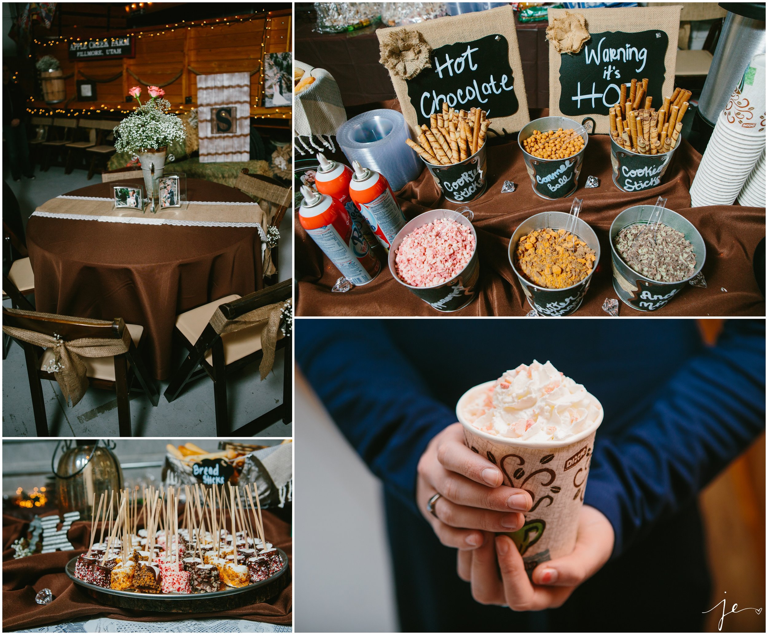 Winter weddings always look so magical with their perfect snowy white backgrounds and deep romantic colors. Keri and Tysons wedding celebration started with them getting sealed to one another in the Payson Utah temple. There is nothing is better than cozy, heart-warming moments as family and friends celebrate with them as the exit the temple doors!!” Nothing says “timeless bride” quite like Keri in her gorgeous lace wedding dress and Tyson in his charcoal grey suit! Keri and Tyson were troopers during our photo session around the temple grounds as temperatures reached..COLD..VERY COLD! I kept telling them “this will be worth it I promise!”Keri and Tyson celebrated their new beginnings in Fillmore Utah inside a rustic apple orchard barn. A night of dancing and hot chocolate making along with some out of control cake feeding top off the night for these two love birds! They excited the party with color sprinkles and kisses to match!! Congrats again Mr. and Mrs. Swallow!! Xoxoxo Jess
